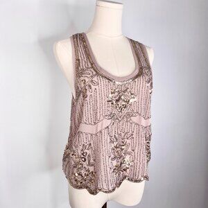 ⋆ This chic piece features a tan-grey base adorned with intricate embroidery and embellished beads, creating a sophisticated, textured look. Perfect for those who love the glamorous, high-fashion aesthetic of the early 2010s, this camisole pairs effortlessly with both casual and dressy ensembles, offering a touch of refined elegance reminiscent of Serena Van Der Woodsen's (from Gossip Girl) effortlessly stylish wardrobe.