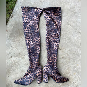 Revamped by Sirens thigh high leopard heel boots Sz 8