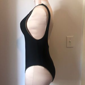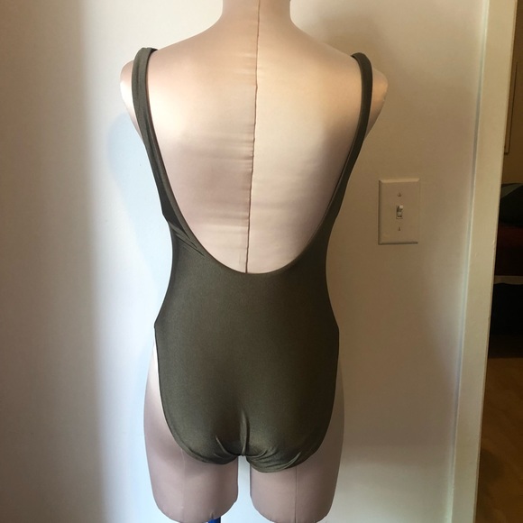 one piece bathing suit with some lining in the cups, solid black or solid olive,