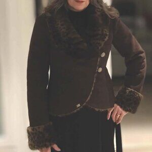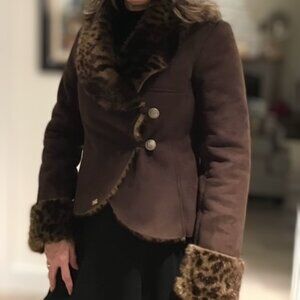 This reversible jacket is faux suede on one side and faux leopard on the other. Size 10