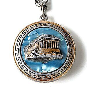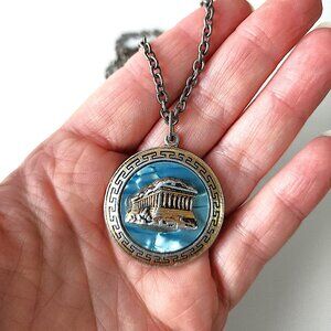 Reversible Greek pendant necklace with The Parthenon on one side and a traditional dancing shoe or Tsarouchia on the other