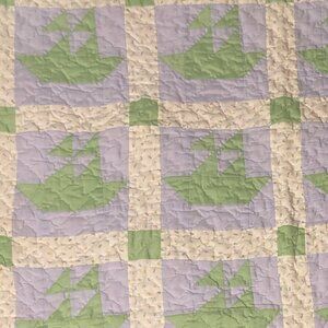 Reversible Hand Made Quilt with Patterned Sail Boats