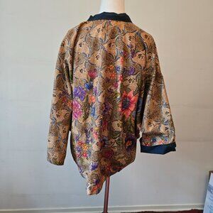 Fun and artful floral pattern kimono that can be reversed to a solid black.