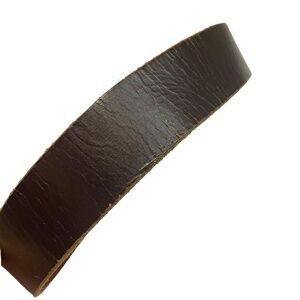 Great belt with a lot of life left!. It is 100% leather and you can flip sides to either wear a brown belt or black belt. There is slight signs of wear that may bother some but not others. Please see last two photos. reach out with any questions :)