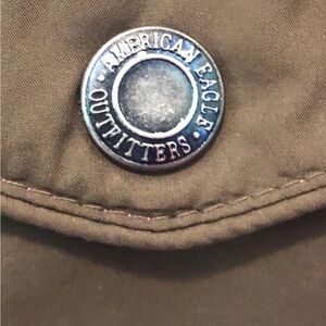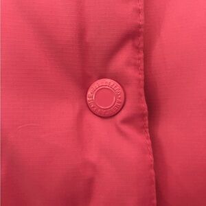 Chic brown vest with subtle pink stitching. Features branded button detail.