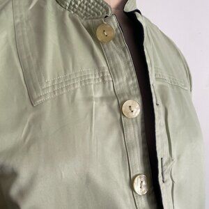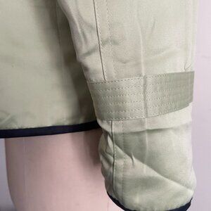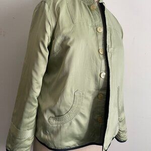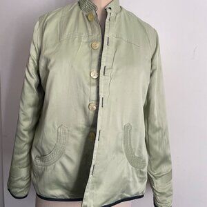 Reversible design – Blue quilted floral satin on one side, smooth light sage satin on the other