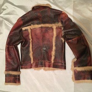 Condition: Very Good - shearling side one shoulder is a bit distressed, also left arm has a well-repaired rip (shows as a small line now.. repair is invisible on rabbit fur side!)