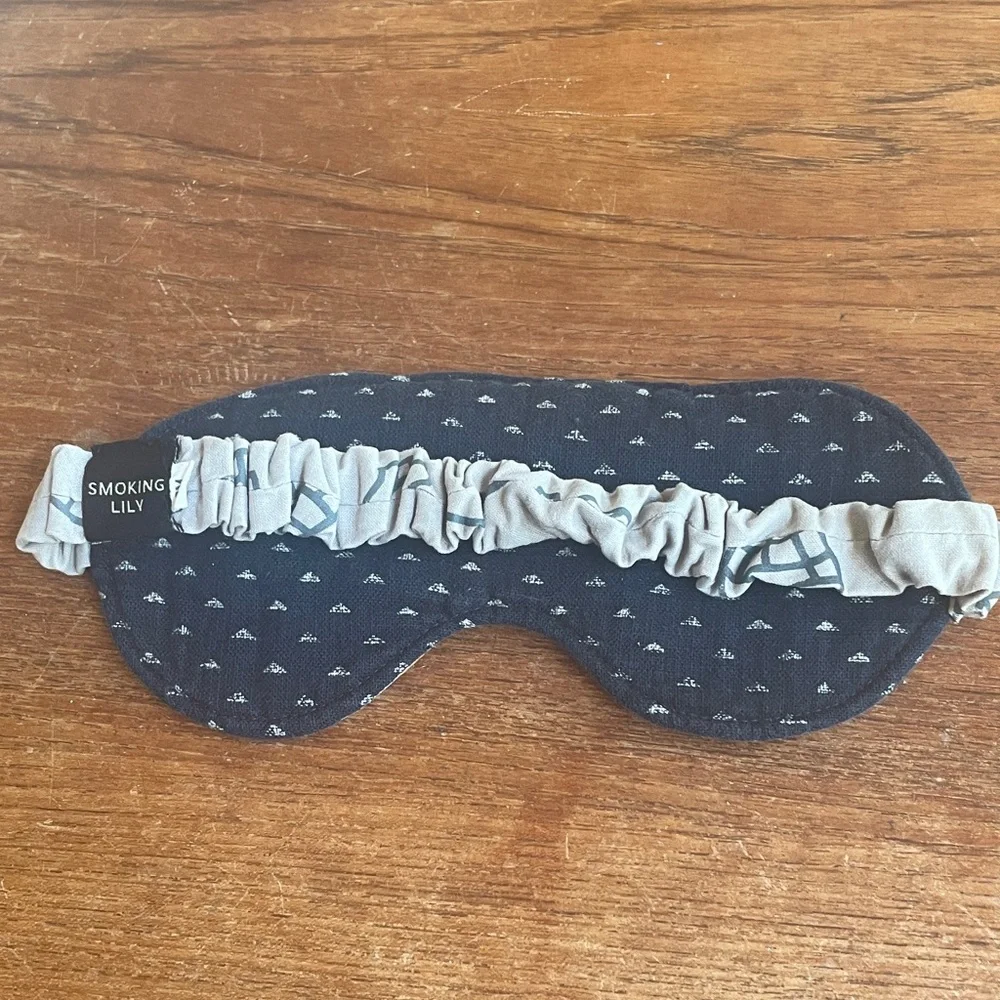 One of a kind, beautiful sleep mask by Smoking Lily. Designed, sewn and silk-screened in Canada. OEKO-TEX® certified fabrics and non-toxic inks used. This mask is perfect for traveling or just as an every-night sleep aid. It’s soft, colourful and beautiful!