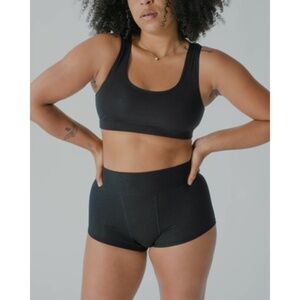 Revol Cares leak-proof underwear in black. Boxer/boyshorts style underwear that doubles as sleep shorts. Ultra high absorbency, yet still soft and super comfy.