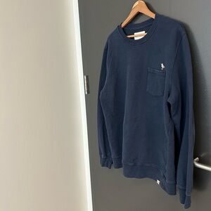 Revolution XL GUC some fading hard to notice stains (might come out in second wash? But photographed in last photo (sleeve stain) Blue Crewneck Sweater. Crafted from a solid knit material, this sweater offers a relaxed fit and a timeless crew neckline, making it an essential addition to your wardrobe.