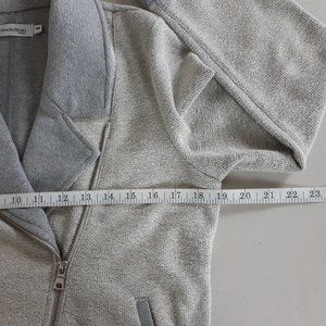 A neutral grey jacket with a moto style design. The material is made with french terry knit fabric for comfort and breathability. Ideal for casual, daily, leisure and active wear. Perfect for spring and early fall. Great condition.
