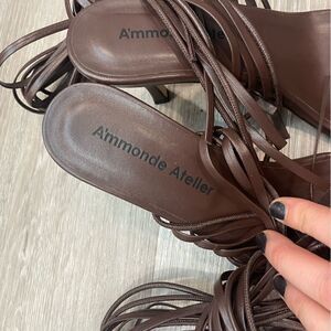 Revolve A'MMONDE ATELIER Aria 75 Multi Strap Leather Sandals in Brown