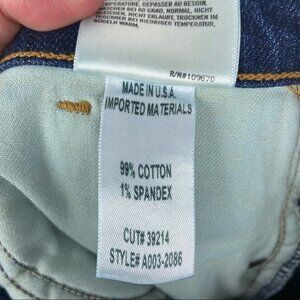 Agolde Sophie High Rise Skinny Jeans in Chamberlain and Women's Size 24. From Revolve. 99% cotton and 1% spandex. Slight whiskering and fading along front. 12" at the knee narrows to 10" at the leg opening. Made in the USA. Machine washable. Very good pre-loved condition. No visible flaws.