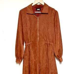 Revolve Alexia Admor Hailey Micro Suede MIDI Dress Copper Sz 8