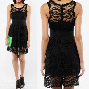 Revolve BB Dakota Black Meadow Lace Dress Size 6 Lined Cotton Nylon Missing Belt