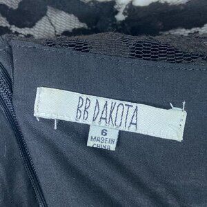 BB Dakota Meadow Lace Dress in Black and Women's Size 6. From Revolve. Fully lined. Back zipper closure. Outer lace: 70% cotton and 20% nylon. Lining is 100% cotton. Hand wash. Fully lined. Very good pre-loved condition but please note that the cumber-bun (belt) is not included. Retails for $92 USD (approximately $128 CAD).