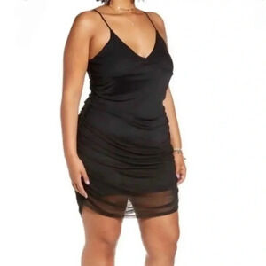 Revolve BP Ruched Mesh Mini Dress Black Plus Size