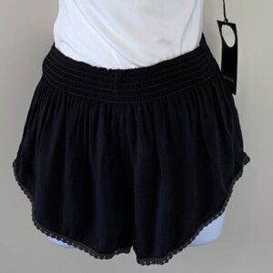 Revolve Blue Life Beach Bunny Shorts Micro High Rise Waist Smocked Soft Black M