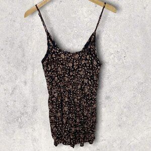 Revolve Ditzy Floral Romper Playsuit Size Large Brown Black Boho Festival Amuse
