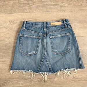 Revolve GRLFRND Eva A-Frame Gusset Mini Denim Skirt Distressed Size 24