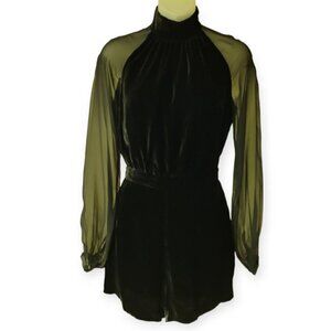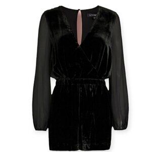 Revolve INTERMIX black velvet blouson sleeve romper by size 0 NWT black tie