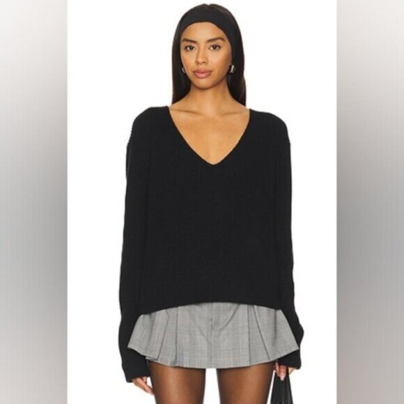 Revolve John + Jenn Dark Green Spun Rayon V-Neck Sweater S