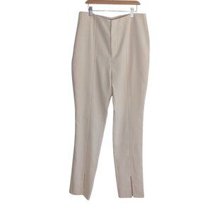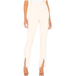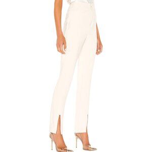 The Hanriette Pant by Revolve brand L'Academie features a zip fly with hook and bar closure and a front pintuck seam with a split hem. These high waisted trousers are crafted from cream colour crepe fabric.