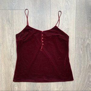 Revolve L'Academie Velvet Button Front Cami Blouse Top Red