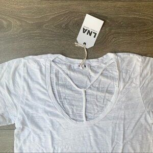 Elevate your casual wardrobe with this brand new LNA Strap Tee T-Shirt in a stunning white color. This short sleeve burnout tee features a unique strappy design that adds a touch of edgy style to your look. Made from high-quality materials, this size S shirt is both comfortable and stylish, perfect for everyday wear or dressing up for a night out. The versatile design of this tee allows you to pair it with jeans, skirts, or shorts for a variety of chic outfits. Add this must-have piece to your collection and make a statement wherever you go with its trendy and fashionable appeal.