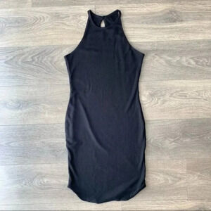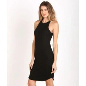 Revolve LNA Elise Mini Dress Black Rib Knit Sleeveless Jersey High Neck Small