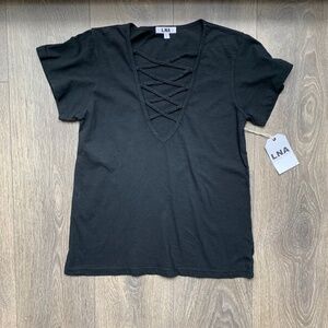 Revolve LNA Kontrol Kross Tee T-Shirt Short Sleeve Straps Black Lace up Small