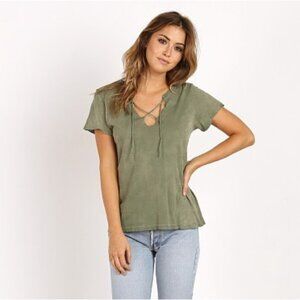 New revolve LNA White Raw Tie Short Sleeve Tee T-Shirt.