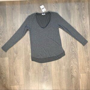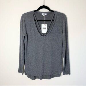New Revolve LNA Charcoal Gray Strappy V-neck Long Sleeve Sweater.