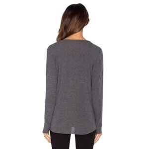 Revolve LNA Strappy Sweater V-neck Long Sleeve Fuzzy Soft Charcoal Grey Size XS