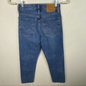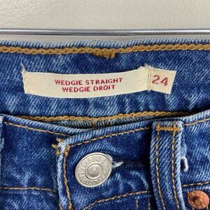 Revolve Levis Wedgie Straight Jeans Love Triangle Size 24 Raw Hem Distrese Denim