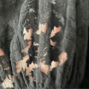 Revolve Line & Dot black sheer lace mesh embroidered floral off the shoulder puffy flutter ruffle 3/4 sleeve top. Elastic waistband and collar