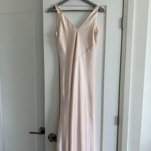 A beautiful silk dress from Line and Dot. Like new. This dress is effortless and classy. Can be worn casual or for a more dressier occasion. The colour is a lovely off-white and the the length hits above your ankles for someone thats around 5'4.