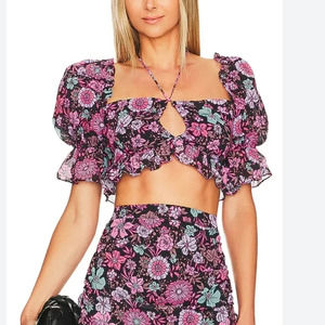 Revolve MAJORELLE Olivia floral crop top Dancing Valley black medium NWT