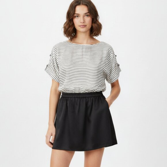 Revolve Mink Pink Women's Satin Mini Dress Stripes Short Sleeve Black White S