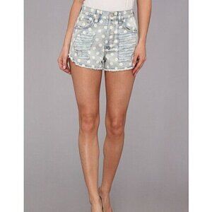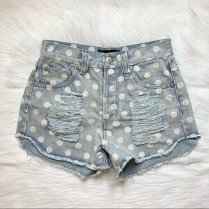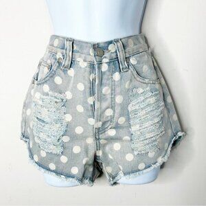MINK PINK Sugar Magnolia Polka dot Distressed Denim Shorts.