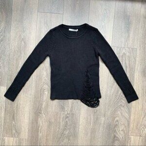 Anthropologie One Grey Day Black Robert Distressed Pullover Sweater.