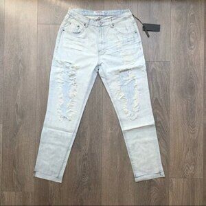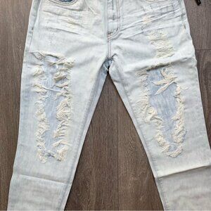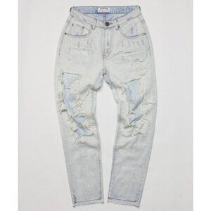 One teaspoon, light wash, awesome baggies, boyfriend jeans, straight leg, boho, denim, skinny, distressed, rips, raw hem.