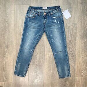 Revolve One Teaspoon Freebirds Skinny Jeans Crop Blue indigo Zipper straight leg