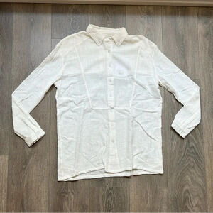 Elevate your wardrobe with this chic and versatile Revolve One Teaspoon Button Down Shirt in size XS. Made from high-quality gauze poplin cotton, this shirt is lightweight and breathable, perfect for all-day comfort. The classic white color makes it easy to pair with any outfit, whether you're dressing it up for a night out or keeping it casual for a day at the office. The button-down style adds a touch of sophistication, while the relaxed fit ensures a flattering silhouette. This pre-loved shirt is in great condition, with plenty of life left to give. Whether you're a fan of the Revolve One Teaspoon brand or just looking for a stylish wardrobe staple, this shirt is a must-have. Don't miss out on the opportunity to add this timeless piece to your collection. Perfect for any season, this XS shirt is a versatile addition to any closet. Update your look with this Revolve One Teaspoon Button Down Shirt today!