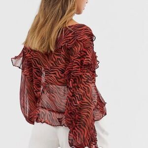 Revolve Stevie May Walk On By Sheer Tiger Print Ruffle Blouse L