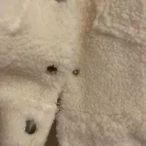 Superdown cropped teddy jacket from Revolve. Sold out online. True colour is shown in fit photos, my own photos are taken at night with indoor yellow lighting hence the creamier tone.