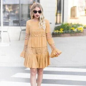 revolve, Tularosa, ruffles, long sleeves, mini dress, lace, loose, flowy, fall, flare sleeves.