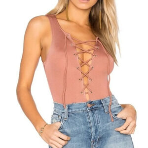 New Revolve Tularosa Pink Blush Nile Lace Up Bodysuit.