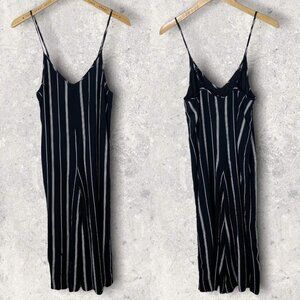 Revolve Amuse Society The Colton Jumper in Black and White Stripes and Women's Size Small. Retails for $120 USD (approximately $167 CAD). Light and airy material. V-neck. Adjustable straps. Slightly cropped. Wide leg. looks great with sneakers, strappy sandles or ankle boots!! Also super cute on top of a long sleeve top. 100% Viscose. Hand wash. Made in India.