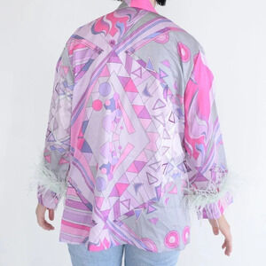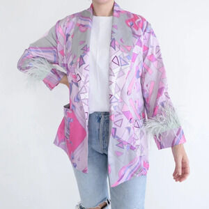 Revolve X Oceanus Multicolor Silk Pants w/ Ostrich Feather Swimwear Resortwear Style Pants and Blazer- brand new without tags.